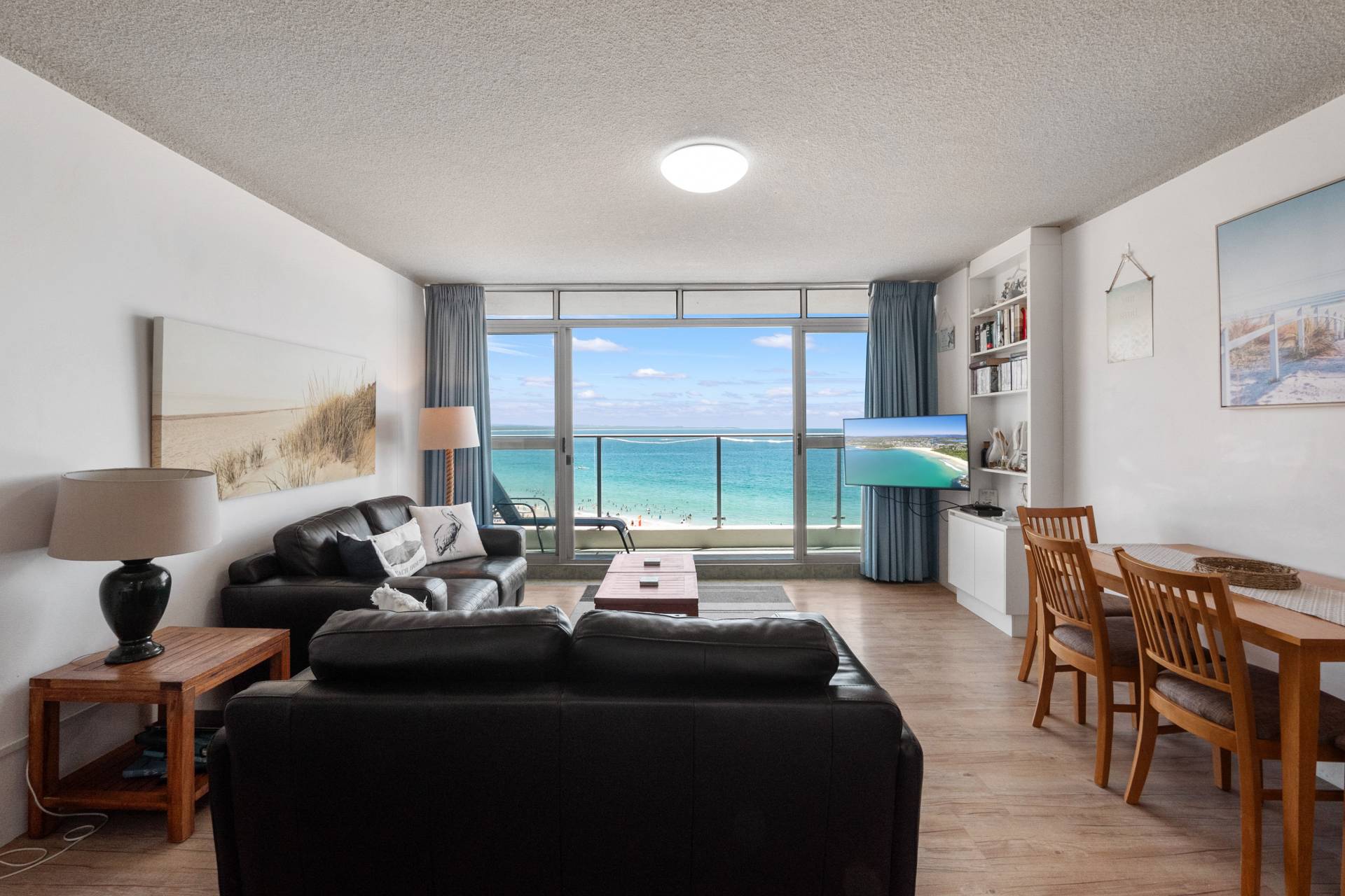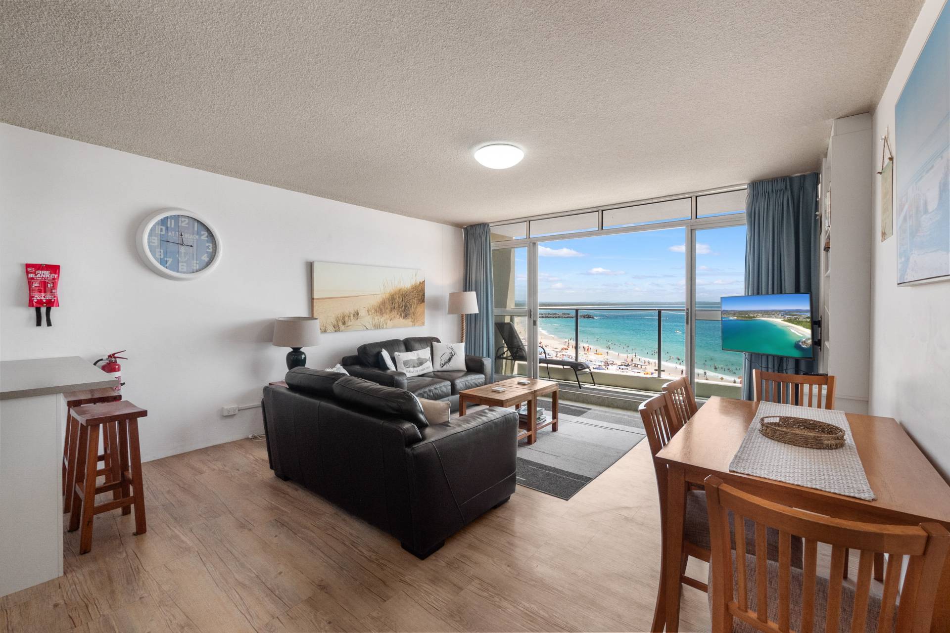 Stunning beachfront views in this 2 bedroom 4th floor centre front unit opposite Forster Main Beach and ocean baths. Open plan living area allowing panoramic views over Main Beach. Great winter sun. Short walk to town centre. Security deposit payable. Saturday to Saturday bookings only. THIS UNIT IS NON SMOKING.