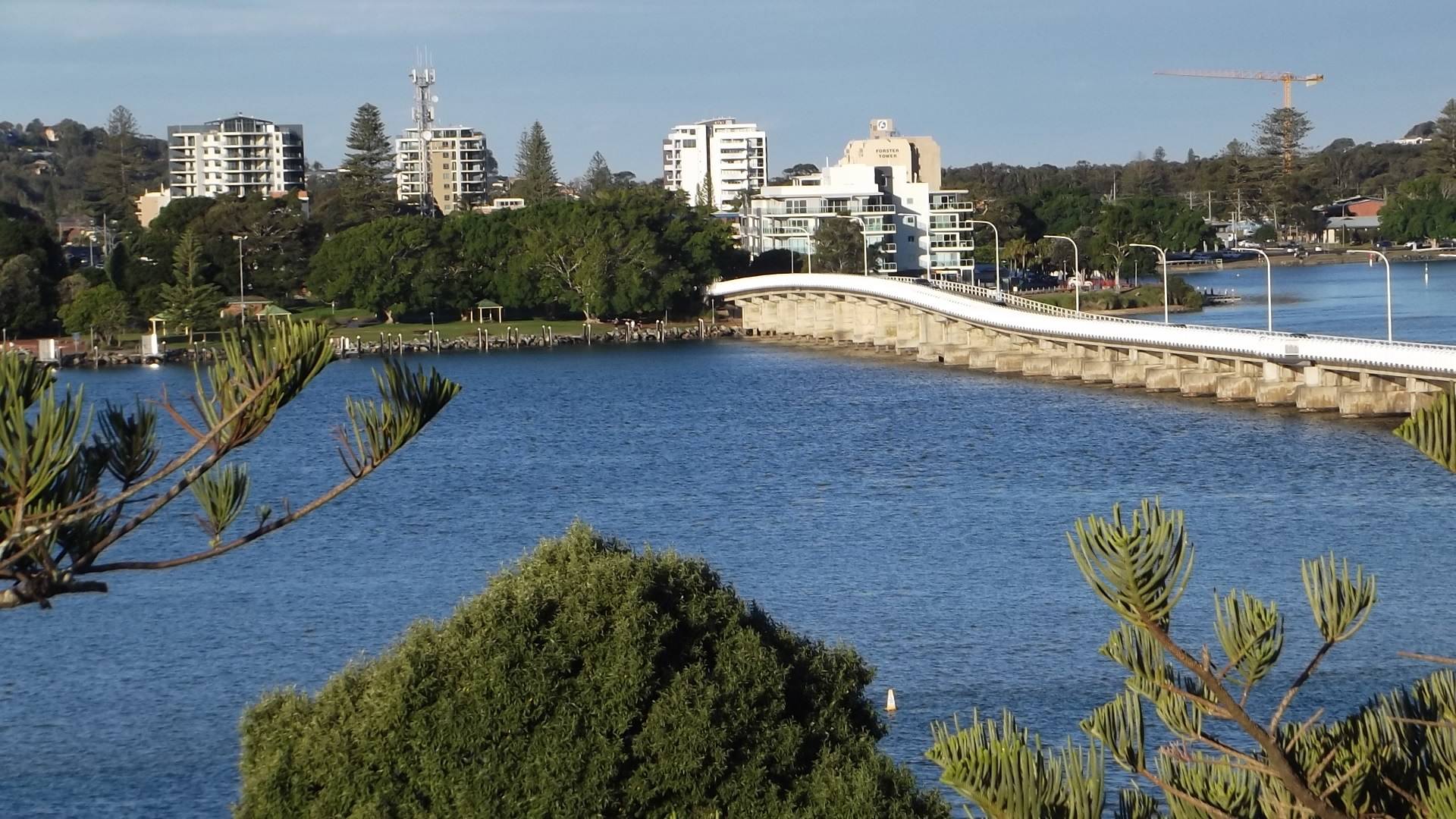 3 bedroom fully furnished 7th floor unit with magnificent views of lake, bridge, Forster/Tuncurry and ocean. Rooftop deck area, half court tennis court.  Ensuite, built in robes, dishwasher, internal laundry.  Security block with lift, undercover secure parking space.  Opposite John Wright Park and lake.